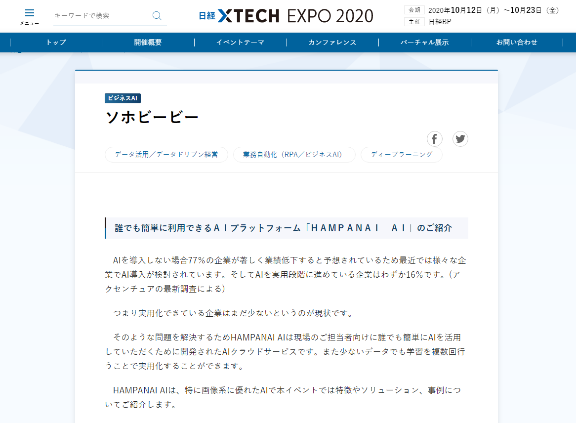 AI EXPOでの弊社ソホビービーのコンテンツが完成しました。